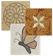 Ogni intarsio può essere effettuato su diversi materiali, sia su "Ciotolo" che su " Piastrella". Vi preghiamo di richiedere la disponibilità al momento dell'ordine.